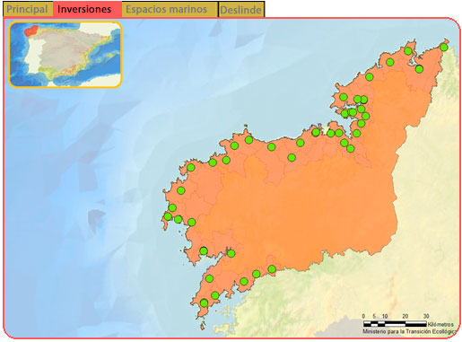 Pinche en las pestañas de la zona superior de la imagen para seleccionar una temática Mapa principal Haga click aquí para ver un mapa interactivo de las principales obras y proyectos en la provincia Haga click aquí para ver información sobre Espacios marinos Haga click aquí para acceder a los deslindes de la provincia Mapa principal Actuaciones en A Pobra do Caramiñal Actuaciones en Ribeira Actuaciones en Rianxo Actuaciones en Porto do Son Actuaciones en Noia Actuaciones en Muros Actuaciones en Dumbría Actuaciones en Corcubión Actuaciones en Cee Actuaciones en Muxia Actuaciones en Camariñas Actuaciones en Laxe Actuaciones en Cabana de Bergantiños Actuaciones en Ponteceso Actuaciones en Malpica de Bergantiños Actuaciones en Carballo Actuaciones en A Laracha Actuaciones en Arteixo Actuaciones en A Coruña Actuaciones en Oleiros Actuaciones en Sada Actuaciones en Bergondo Actuaciones en Miño Actuaciones en Pontedeume Actuaciones en Cabanas Actuaciones en Fene Actuaciones en Ares Actuaciones en Ferrol Actuaciones en Valdoviño Actuaciones en Ortigueira Actuaciones en Cariño Actuaciones en Cedeira Actuaciones en Mañón Actuaciones en Padrón Actuaciones en Boiro Actuaciones en Mugardos Actuaciones en Neda Actuaciones en Narón Actuaciones en Betanzos Actuaciones en Fisterra Actuaciones en Dodro Actuaciones en Culleredo