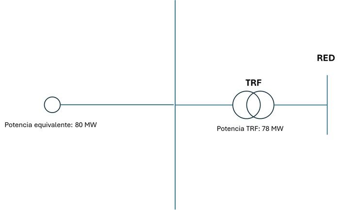 Dado que existe un transformador aguas arriba del transformador común, es necesario ver la potencia máxima de los elementos conectados en serie, siendo la potencia instalada de M3 + M4: