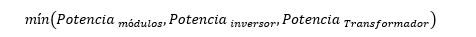 Con los valores considerados en la imagen anterior, la potencia instalada será la correspondiente a la del inversor.