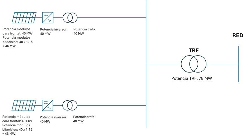Esquema 2: Caso práctico instalación fotovoltaica con módulos fotovoltaicos bifaciales.