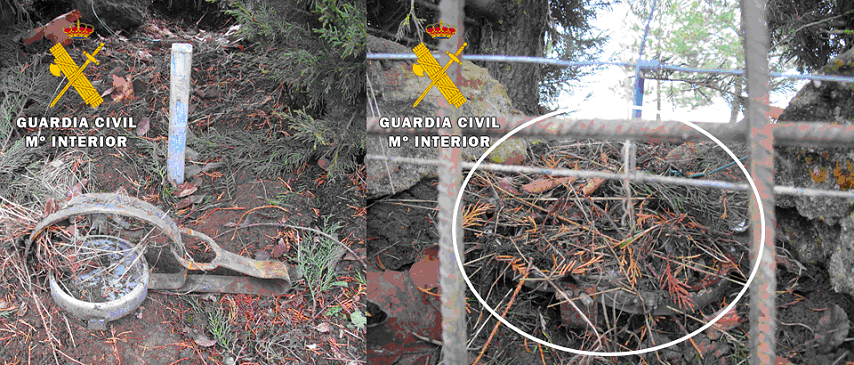 El Seprona ha decomisado un cepo, considerado como arte prohibida para la caza, que se encontraba instalado en la valla perimetral de una instalación deportiva.