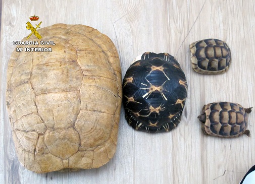 Han sido incautados 89 especímenes, cuatro caparazones y cinco huevos de las especies Testudo Marginata, Testudo Hermanni, Aldabrachelys Gigantea, Astrochelys Radiata y Stigmochelys Pardalis, cuya tenencia, reproducción en cautividad y comercialización, sin autorización, está prohibida.