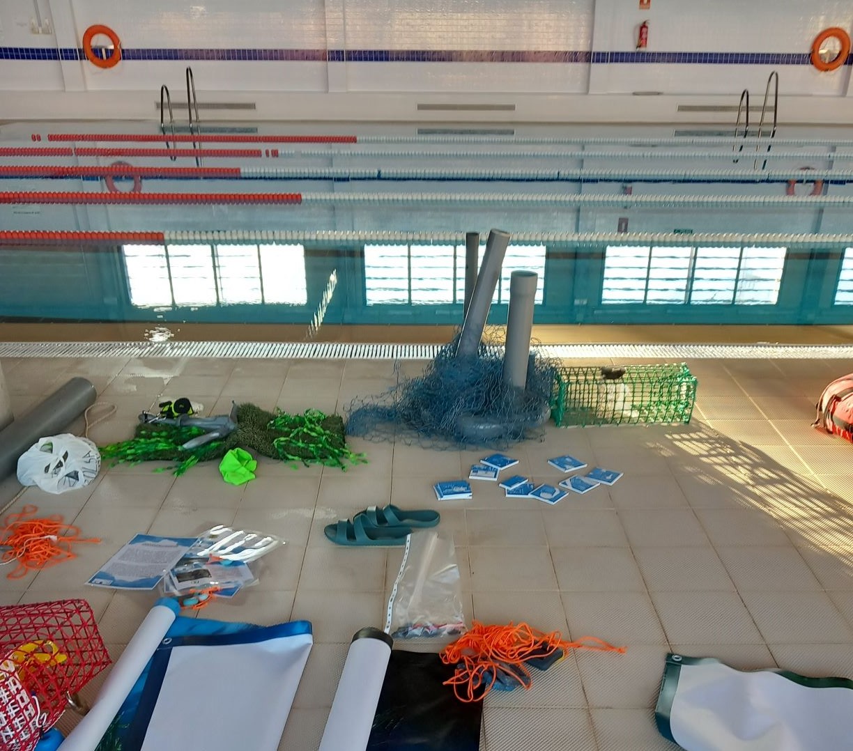 Durante la actividad, los asistentes al seminario ayudaron a montar el escape room, explicando cada paso del proceso creativo y las dificultades técnicas de desarrollarlo bajo el agua. En la actividad participaron siete menores usuarios de la piscina municipal.