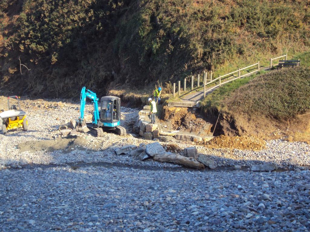 Reconstrucción de rampa de acceso, escollera, rejuntado.