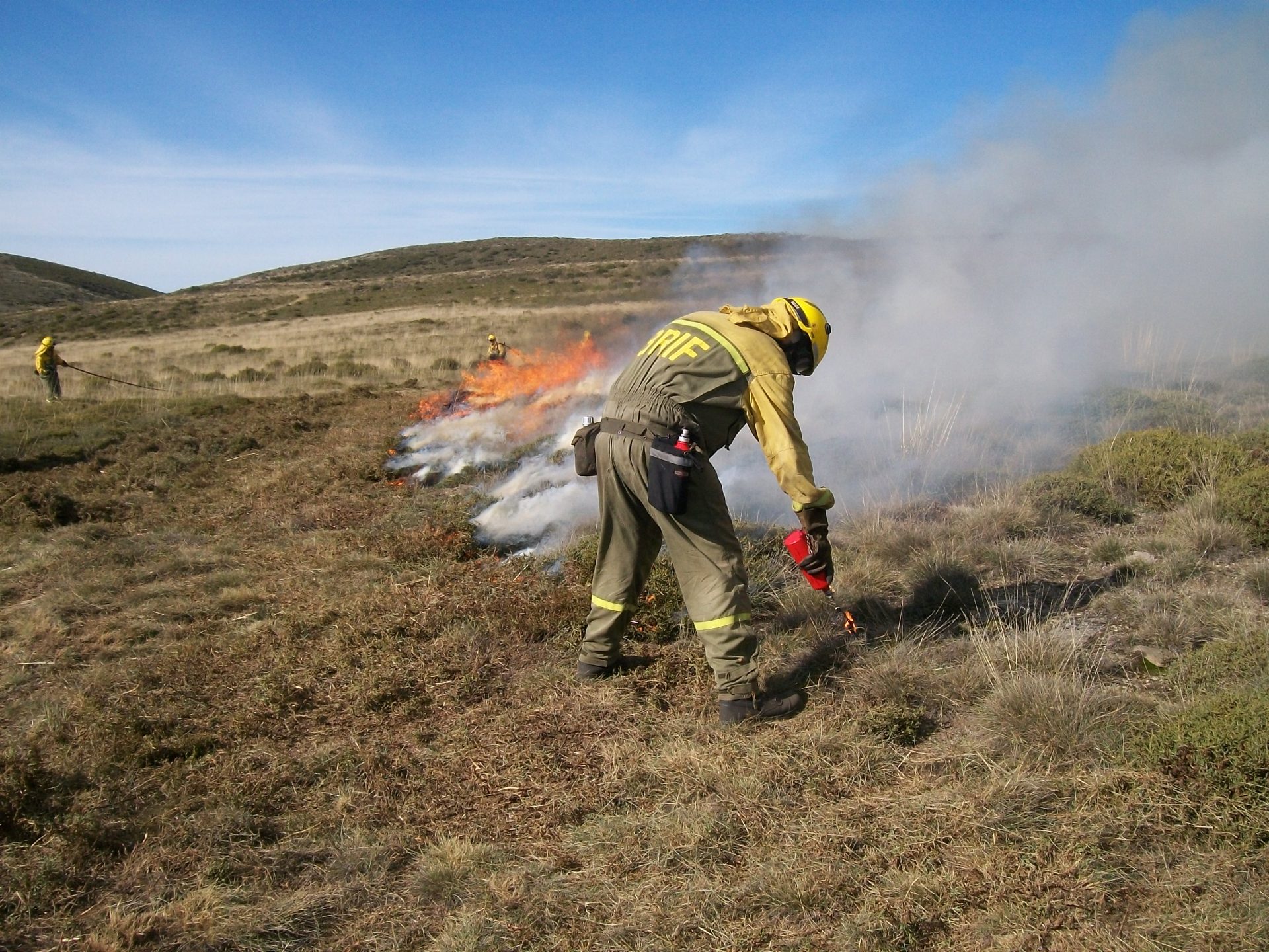 El Ministerio creó en 1998 los Equipos de Prevención Integral de Incendios Forestales (EPRIF). Estos equipos realizan diferentes trabajos para lograr una reducción de los incendios forestales, como campañas de concienciación, gestión de subvenciones o desbroces. Una de sus labores más vistosas y demandadas es la realización de quemas prescritas. Es decir, quemar de manera controlada vegetación forestal, mediante planes previamente establecidos. Los objetivos pueden ser variados, como la protección de una zona arbolada, la restauración de pastos, la apertura de claros… Tras estudiar las parcelas cuya quema se solicita (por de particulares, administraciones, asociaciones,…), se hará un documento técnico que marcará cómo realizarla y en qué condiciones, ya que factores meteorológicos adversos, por ejemplo fuertes vientos, impedirían realizar la quema de forma segura. Además, se determinará si hace falta algún trabajo previo, como un desbroce perimetral, o la implicación que deben tener los solicitantes (en ocasiones se pide, por ejemplo, que acudan un número mínimo de ganaderos para ayudar a realizar una quema). Por supuesto, pasados unos días de su ejecución, se volverá a la zona para comprobar que se han alcanzado los resultados deseados.