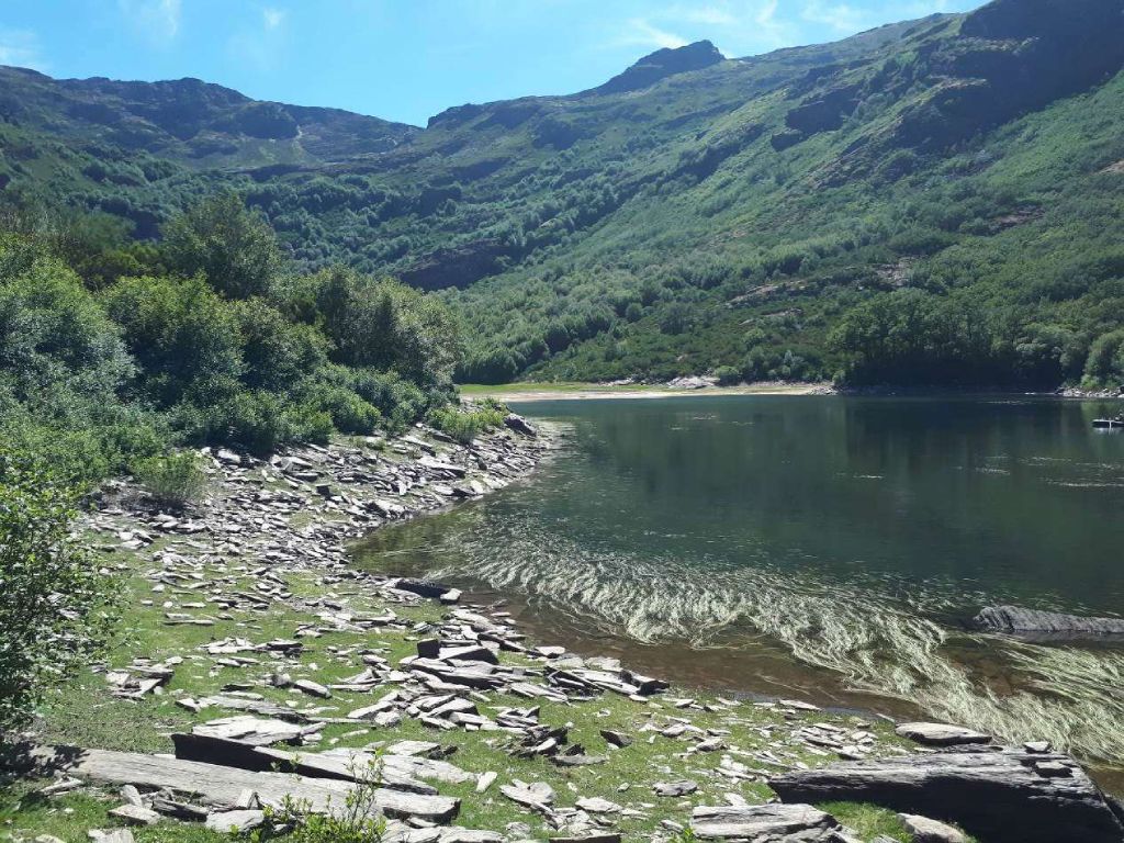 Se encuentra actualmente amenazado por la existencia de canteras de pizarra de grandes dimensiones que se extienden hasta el mismo borde del Monumento Natural. Las voladuras provocadas por la explotación de las pizarras han podido influir en el descenso del nivel del agua de los lagos en los últimos años, si bien no hay estudios en profundidad sobre este aspecto.