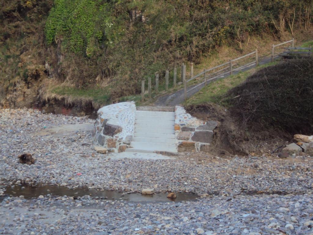 Reconstrucción de rampa de acceso, escollera, rejuntado.